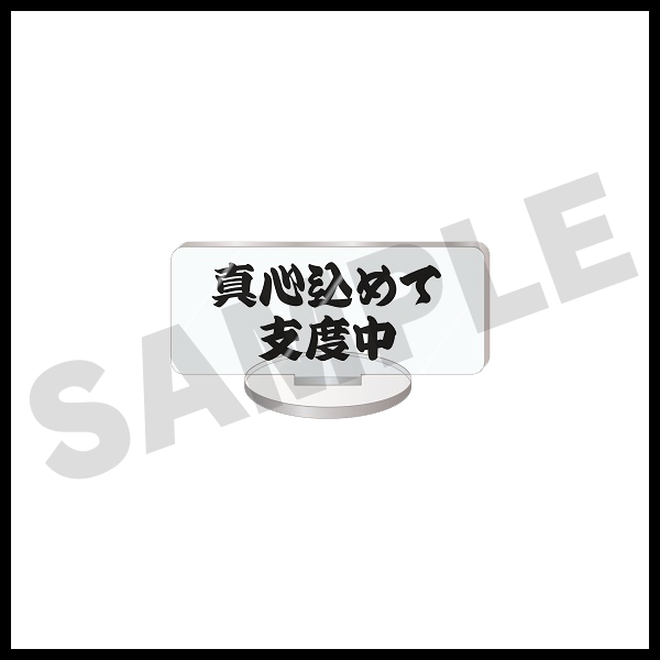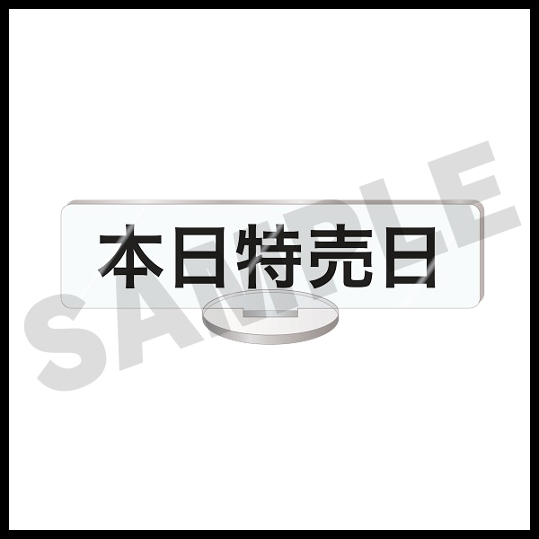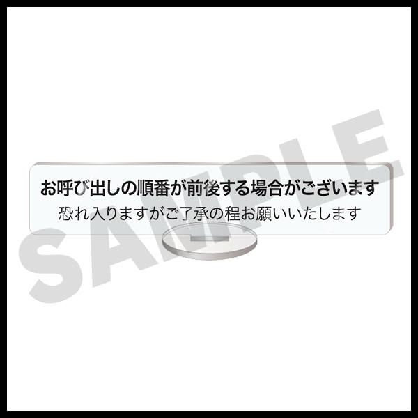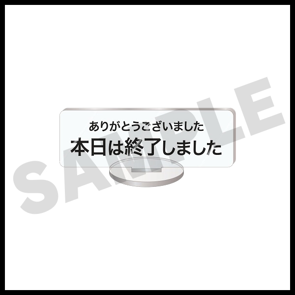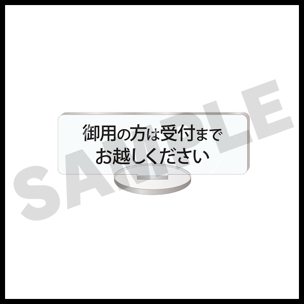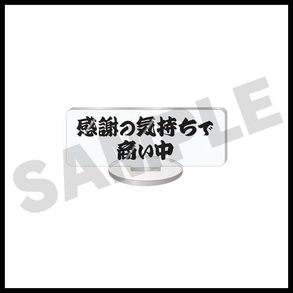 この賞ではアクリルプレート型とアクリルスタンド型の2種類の形状の商品が排出されます。 形状別の大きさは下記のようになります。 商品サイズ アクリルプレート型 約140㎜×70㎜ アクリルスタンド型 約104㎜×70㎜、台座約63㎜×26㎜ ※掲載画像と実際の商品は、サイズや仕様が多少異なる場合がございます。あらかじめご了承ください。